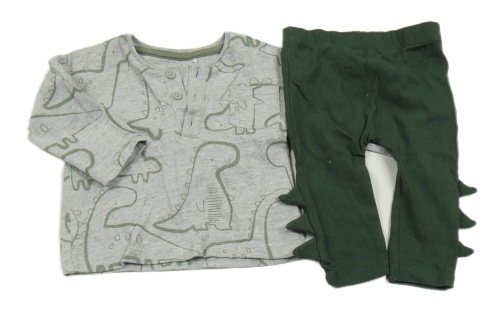 2 set - šedé vzorované triko s dinosaury + khaki lehké tepláky s ostny George