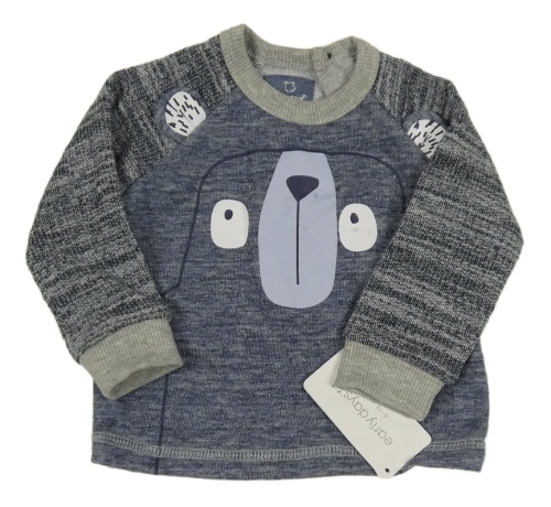 Nové - tmavomodré triko s šedými pletenými rukávy a medvědem Early Days