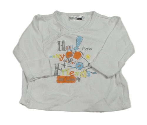 Bílé zavinovací triko s nápisy a myškou Ergee