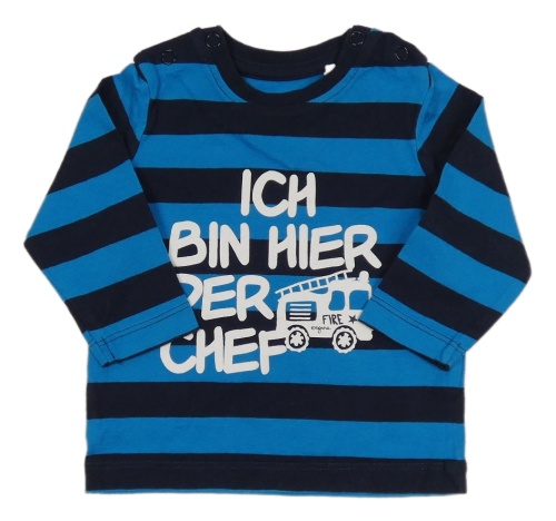 Nové - Tmavomodro-modré pruhované triko s hasičským autem a nápisem Topomini