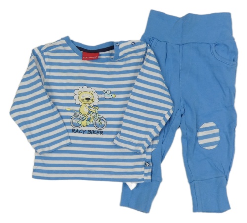 2 set - modro-bílé pruhované triko s lvem + modré lehké tepláky s nášivkami