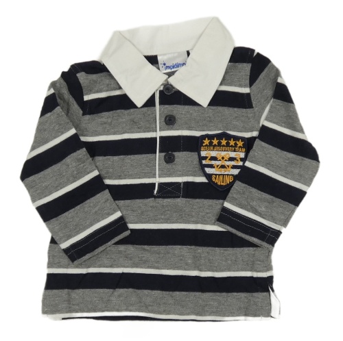 Šedo-černo-bílé pruhované polo triko s nášivkou Impidimpi