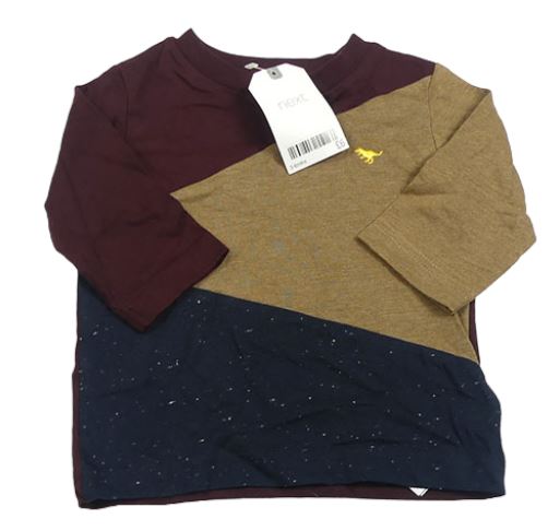 Nové - tmavovínovo-hnědo-tmavomodré melírované triko s dinosaurem Next