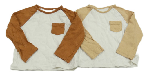 2x triko - bílo-béžové triko s kapsou + bílo-hnědé s kapsou Tu