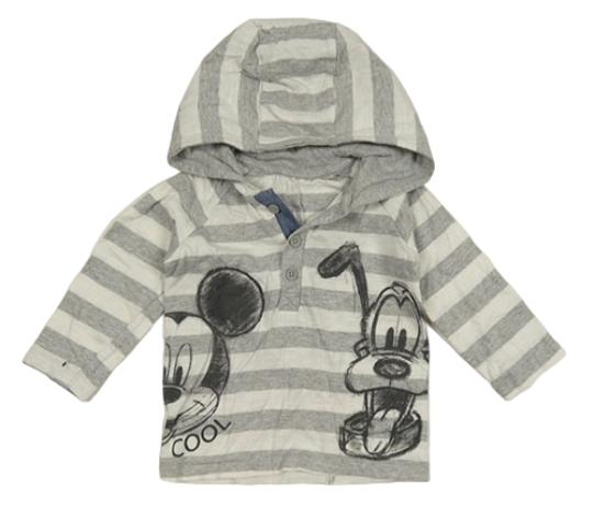 Šedo-bílé pruhované triko s Mickeym s Plutem a kapucí George