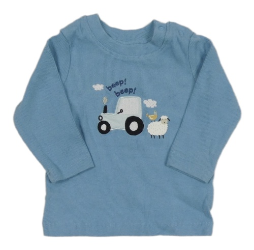 Modré žebrované triko s traktorem a zvířaty