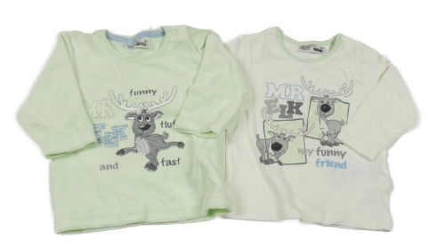 2set - Bílé tričko se soby a nápisy + mintové sametové triko se sobem Ergee
