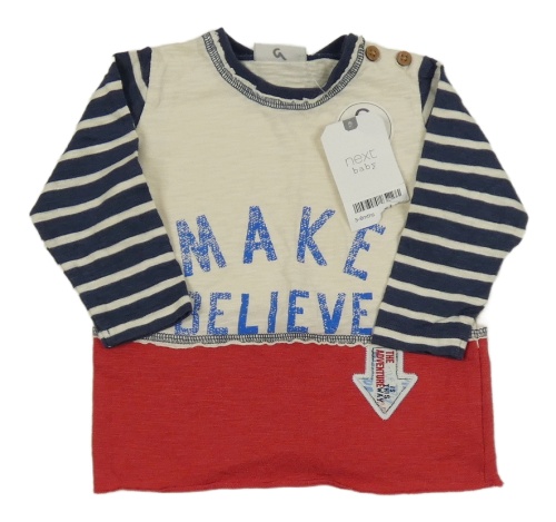 Nové - Krémovo-červeno-tmavomodré triko s nápisem a pruhy Next