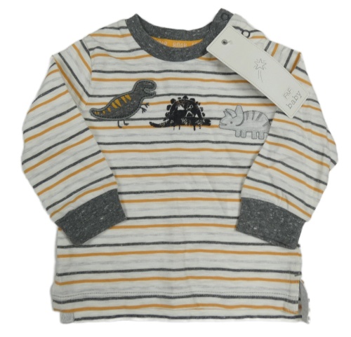 Nové - Bílo-tmavošedo-okrové pruhované triko s dinosaury F&F