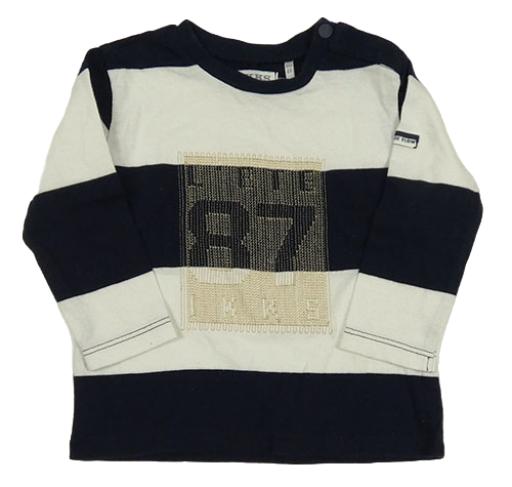 Tmavomodro-bílé pruhované triko s výšivkou a číslem