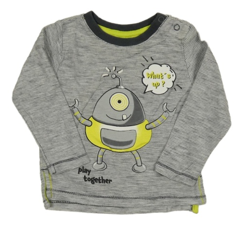 Bílo-tmavošedé proužkaté triko s příšerkou Dopodopo