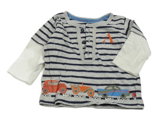 Šedo-tmavomodré pruhované triko s bílými rukávy a auty M&S