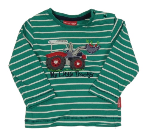 Zeleno-bílé pruhované triko s bagrem SALT and PEPPER
