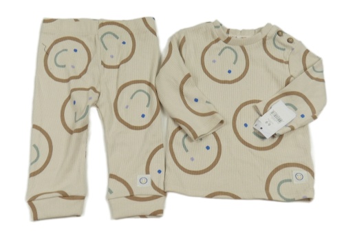 Nové - Béžové žebrované triko se smajlíky + tepláky George