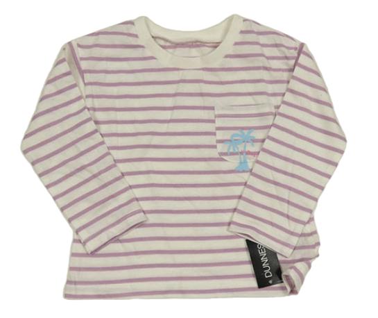 Nové - Bílo-fialové pruhované triko s kapsou s palmami Dunnes
