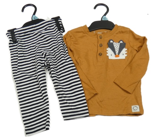 Nové - 2set - Okrové triko s jezevcem + černo-bílé pruhované lehké tepláky F&F