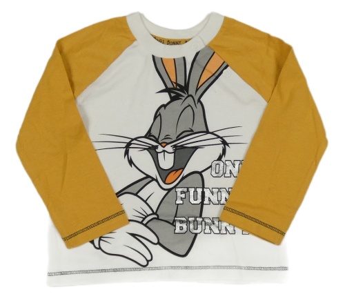 Bílo-okrové triko s králíkem a nápisy