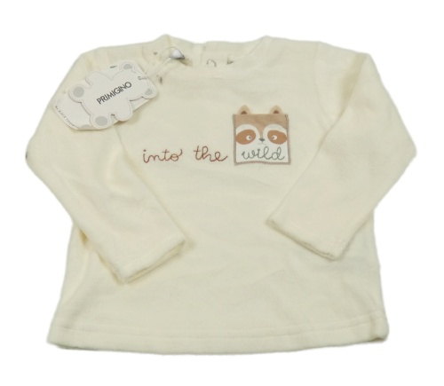 Nové - Smetanové sametové triko s kapsou s mývalem