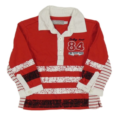 Červeno-bílé pruhované triko s límečkem a číslem Boboli