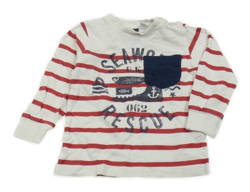 Bílo-červené pruhované melírované triko s nápisy a kotvou a kapsou iDO