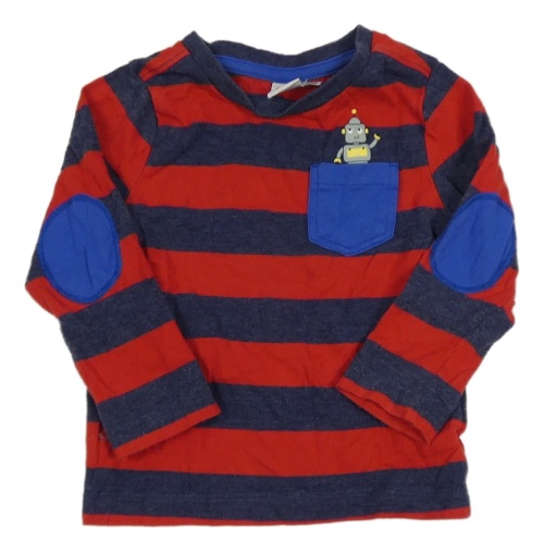 Tmavomodro-červené pruhované triko s robotem a kapsou Miniclub