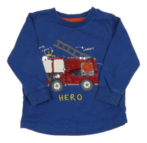 Tmavomodré triko s hasičským autem s překlápěcími flitry Matalan