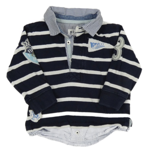 Tmavomodro-bílé pruhované mikinotriko s košilovým límečkem Next