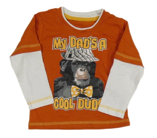 Tmavooranžovo-bílé triko se šimpanzem a nápisy St. Bernard
