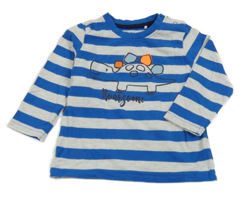 Safírovo-bílé pruhované triko s dinosaurem Topomini