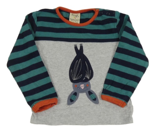 Šedo-zeleno-tmavomodré triko s pruhy a netopýrem