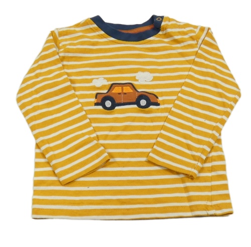 Oranžovo-bílé pruhované triko s autem Pusblu