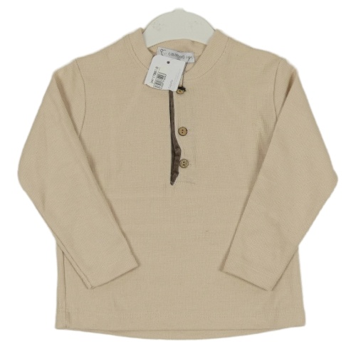 Nové- Béžové žebrované triko s knoflíčky