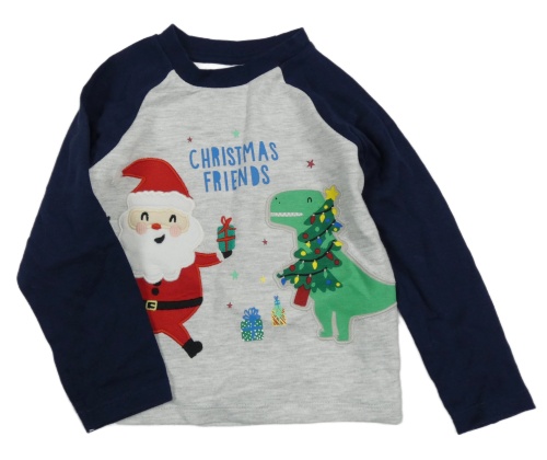 Šedo-tmavomodré triko se Santou a dinosaurem Primark