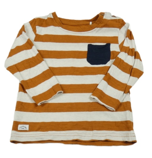Medovo-bílé pruhované melírované triko s kapsou Topomini
