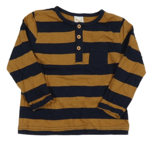 Tmavomodro-hnědé pruhované triko s kapsou Pusblu