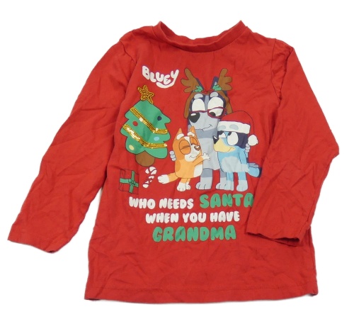Červené triko s pejsky - Bluey a Bingo a vánočním motivem Nutmeg