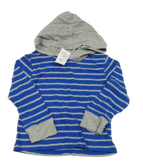 Nové - Tmavomodro-šedé pruhované triko s kapucí Place