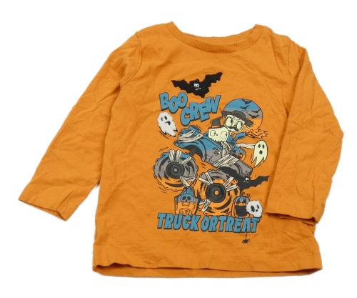 Oranžové triko s monster truckem a netopýry a nápisy Nutmeg