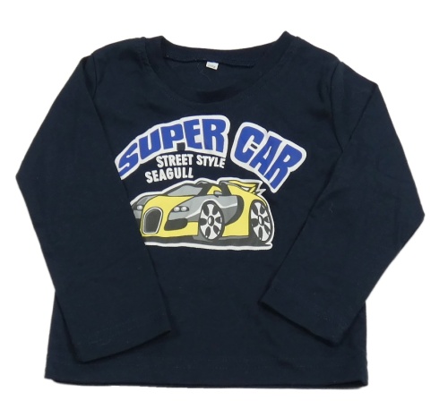 Tmavomodré triko s nápisy a autem