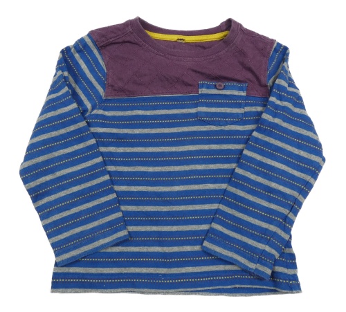 Cobaltově modro-šedo-švestkové pruhované vzorované triko s kapsou