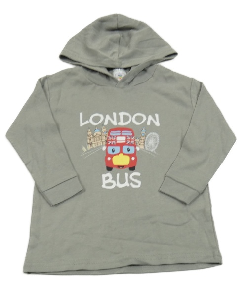 Světlešedé triko s autobusem a kapucí