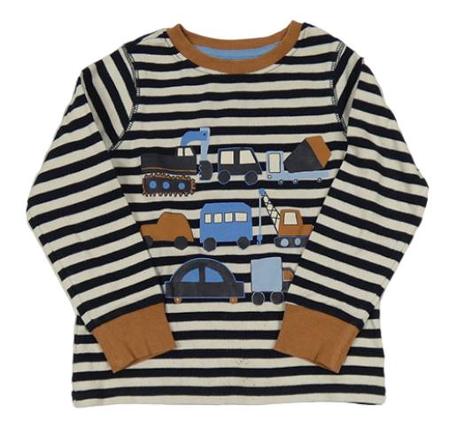 Tmavomodro-smetanové pruhované triko s dopravními prostředky Next