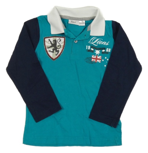 Zeleno-tmavomodré polo triko s nápisem