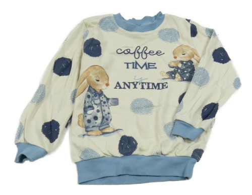 Smetanovo-modré puntíkaté triko s nápisem a králíčky