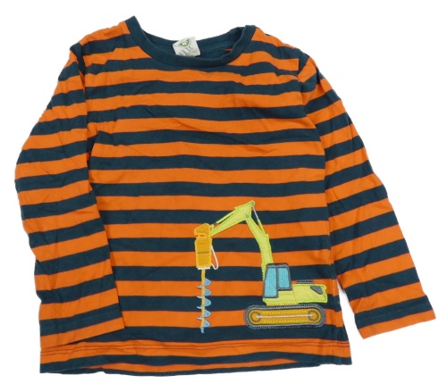Tmavozeleno-oranžové pruhované triko s bagrem Alana