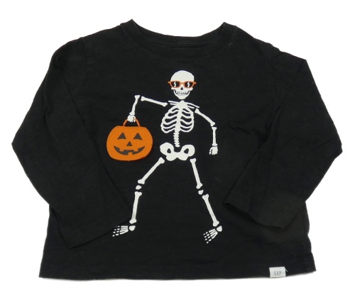Černé melírované triko s kostrou a dýní GAP