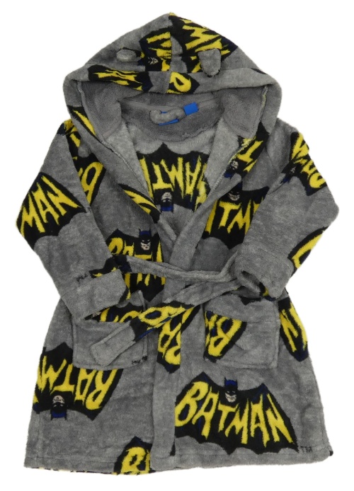 Šedo-černý chlupatý župan s Batmanem a kapucí Rebel