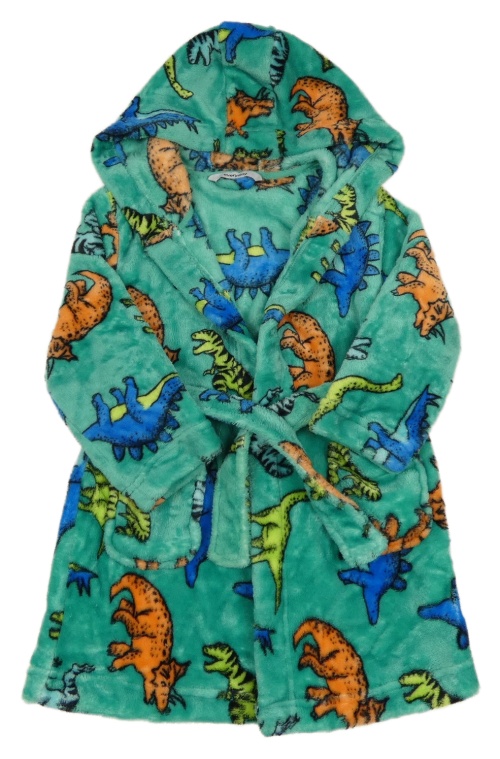 Zelený plyšový župan s dinosaury a kapucí everyday