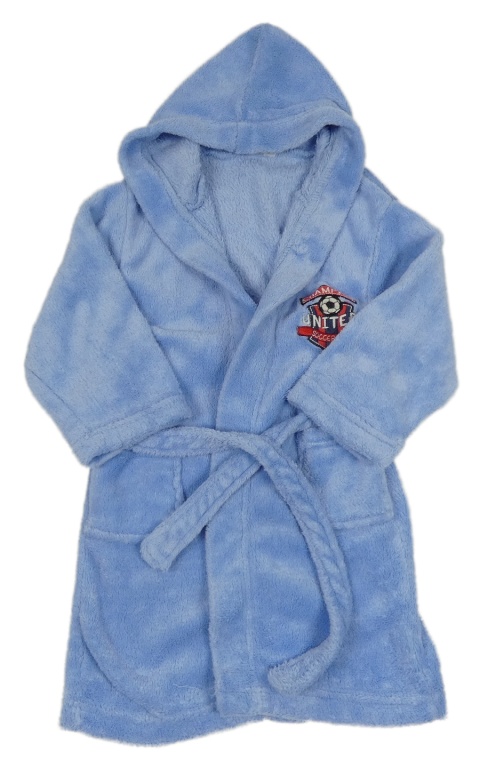 Modrý chlupatý župan s výšivkou a kapucí X-mail