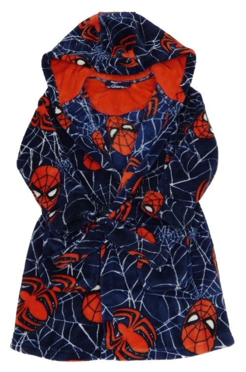 Tmavomodrý plyšový župan se Spider-many a kapucí Tu